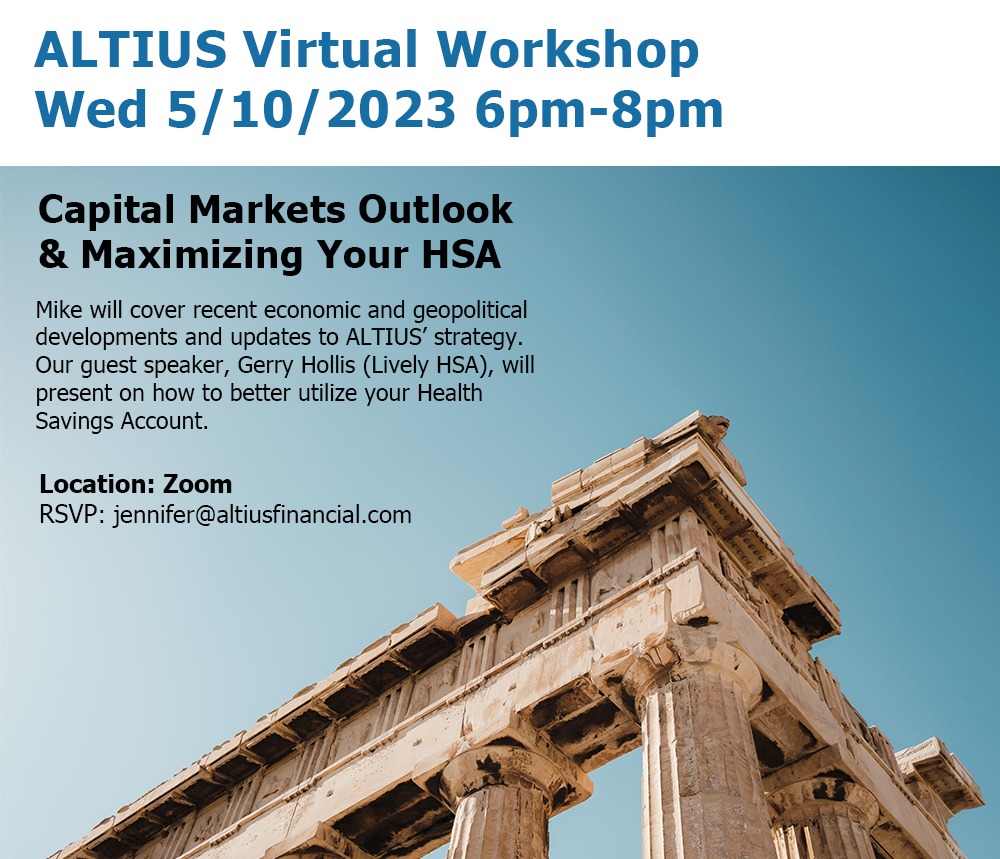 Mike will cover recent economic and geopolitical developments and updates to ALTIUS’ strategy. Our guest speaker, Gerry Hollis (Lively HSA), will present on how to better utilize your Health Savings Account.